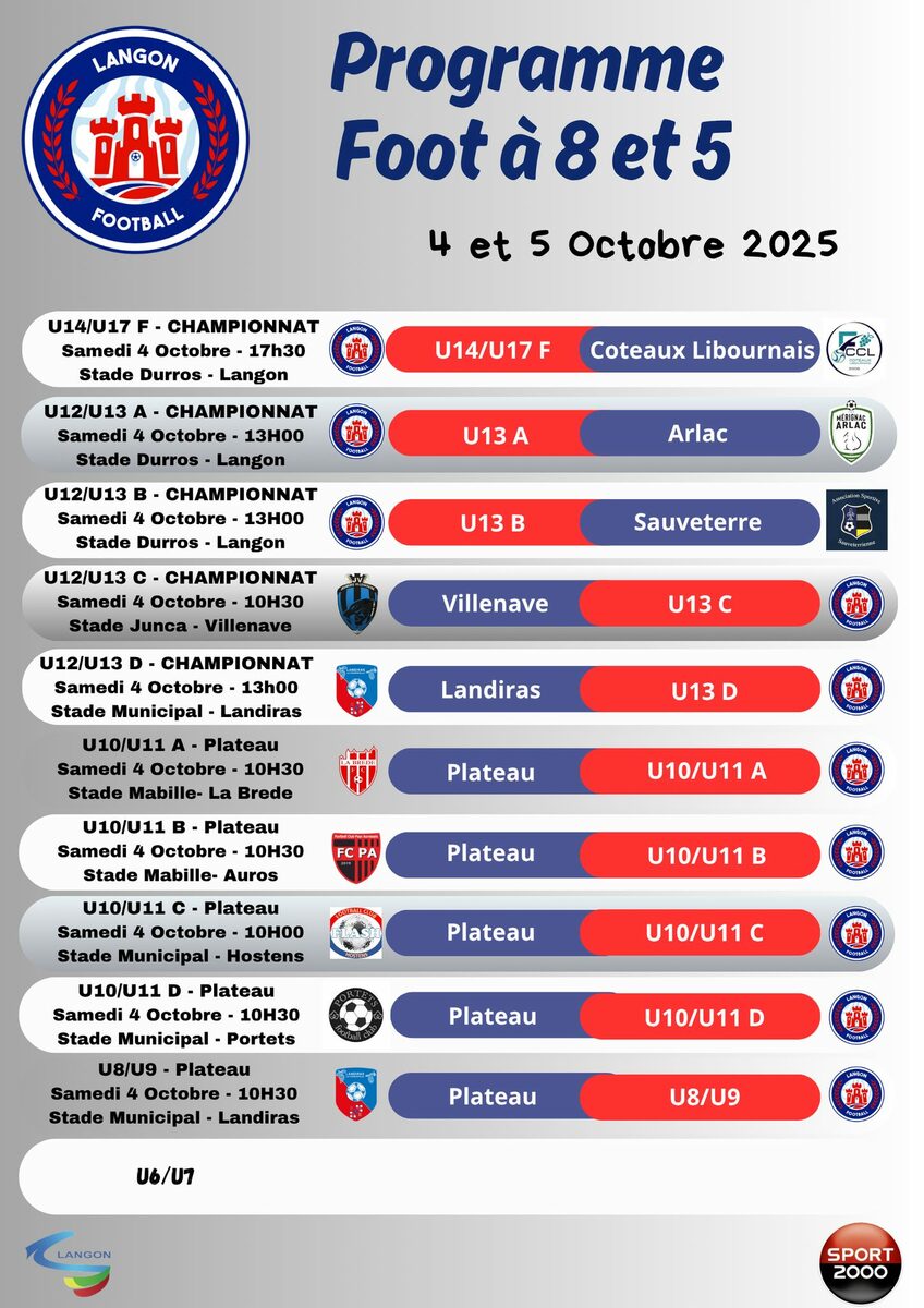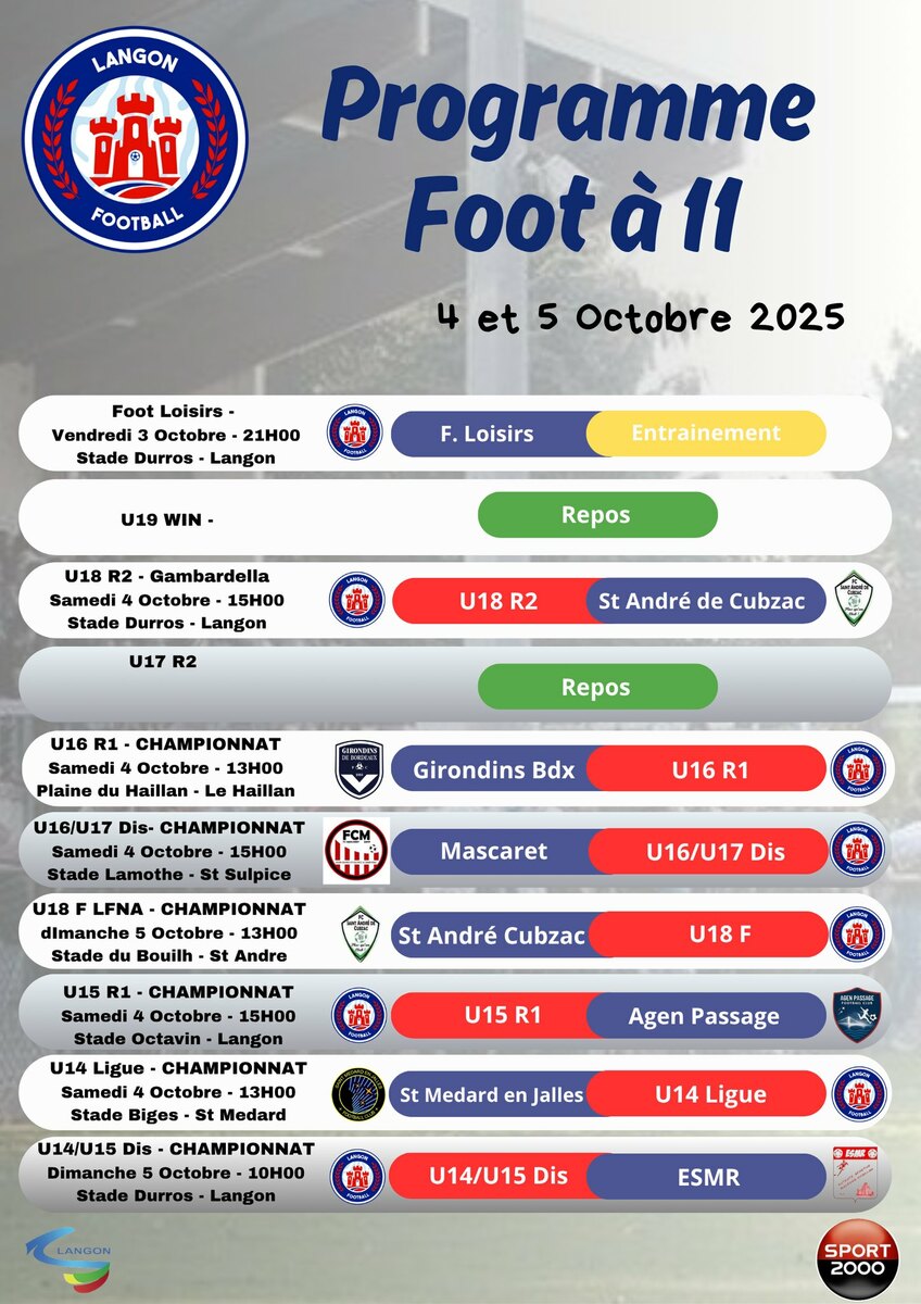 Matchs du week end 4 et 5 octobre 2025